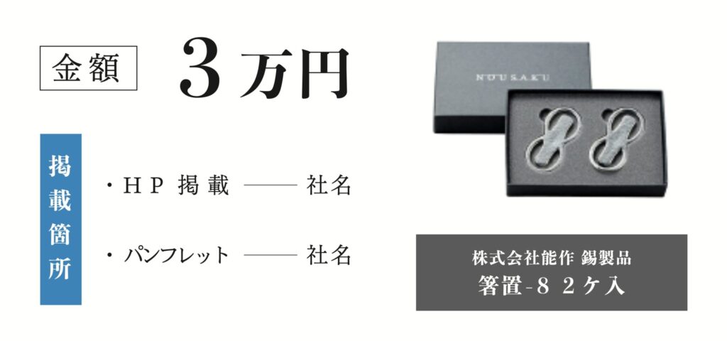 ご協賛いただいた企業様には返礼品をご用意させていただいております。逸品をぜひご堪能ください。